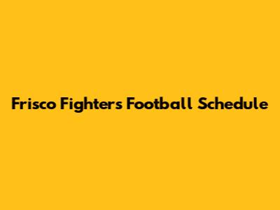 Decoding the Frisco Fighters Schedule