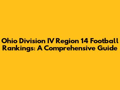 Hey football fanatics! Welcome to the ultimate guide for Ohio Division IV Region 14 football rankings. We're diving deep into the gridiron action, bringing you the lowdown on the teams, their performances, and what it all means for the playoffs. If you're looking to stay in the loop and get the inside scoop on the teams vying for a spot in the state championship, you've come to the right place. Let's break down everything you need to know about the contenders in Region 14.